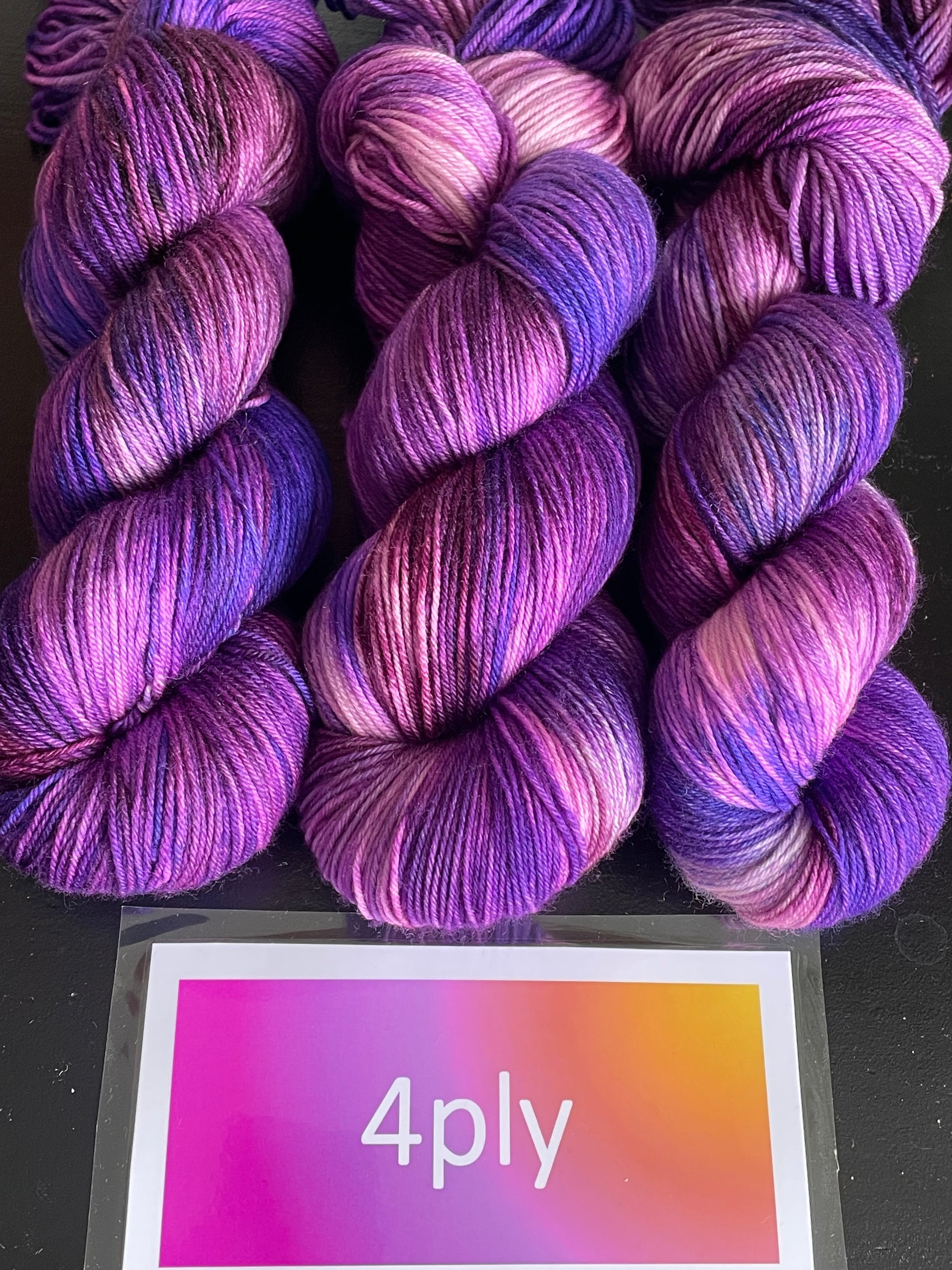 Skeins are photographed in natural light and we try to represent the true colours as much as we can. Please be advised that photography may differ slightly than what you will see 'in person', and may also be different depending on your screen brightness and resolution.