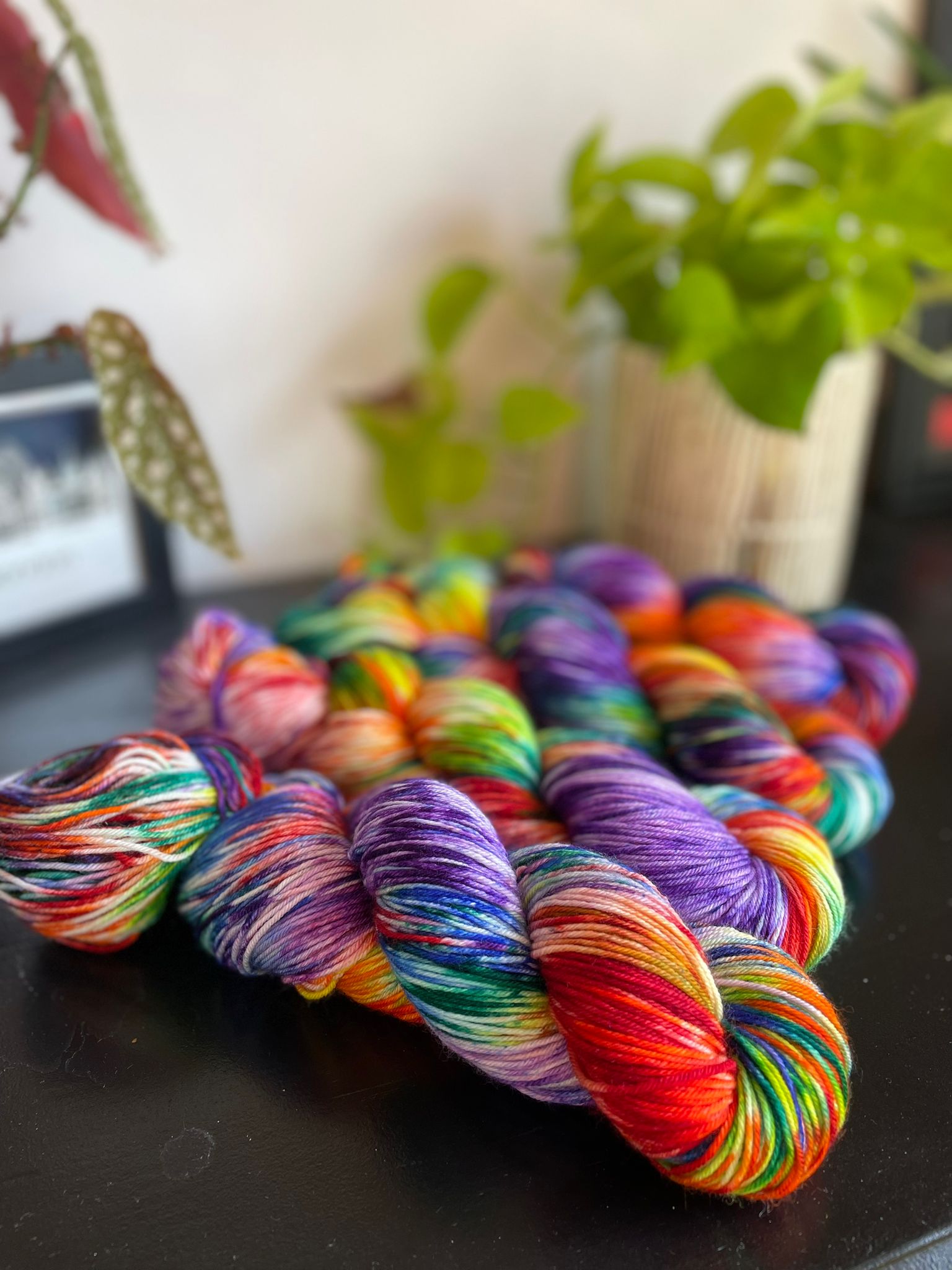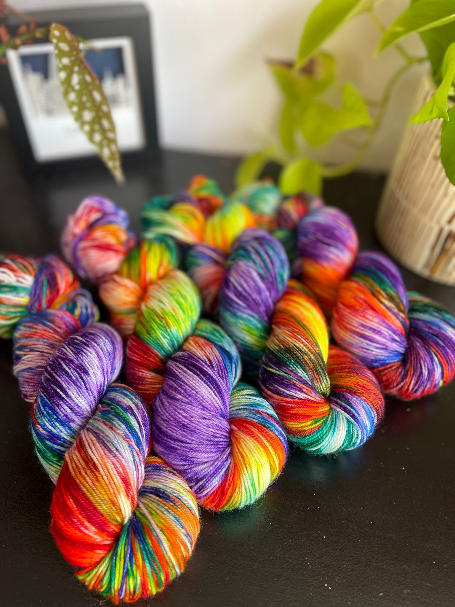 Skeins are photographed in natural light and we try to represent the true colours as much as we can. Please be advised that photography may differ slightly than what you will see 'in person', and may also be different depending on your screen brightness and resolution.